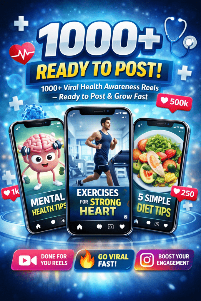 You get 1000+ ready-made health videos (and visuals) that are fully prepared for posting on Instagram Reels, YouTube Shorts, and Facebook. No editing or extra work is required.